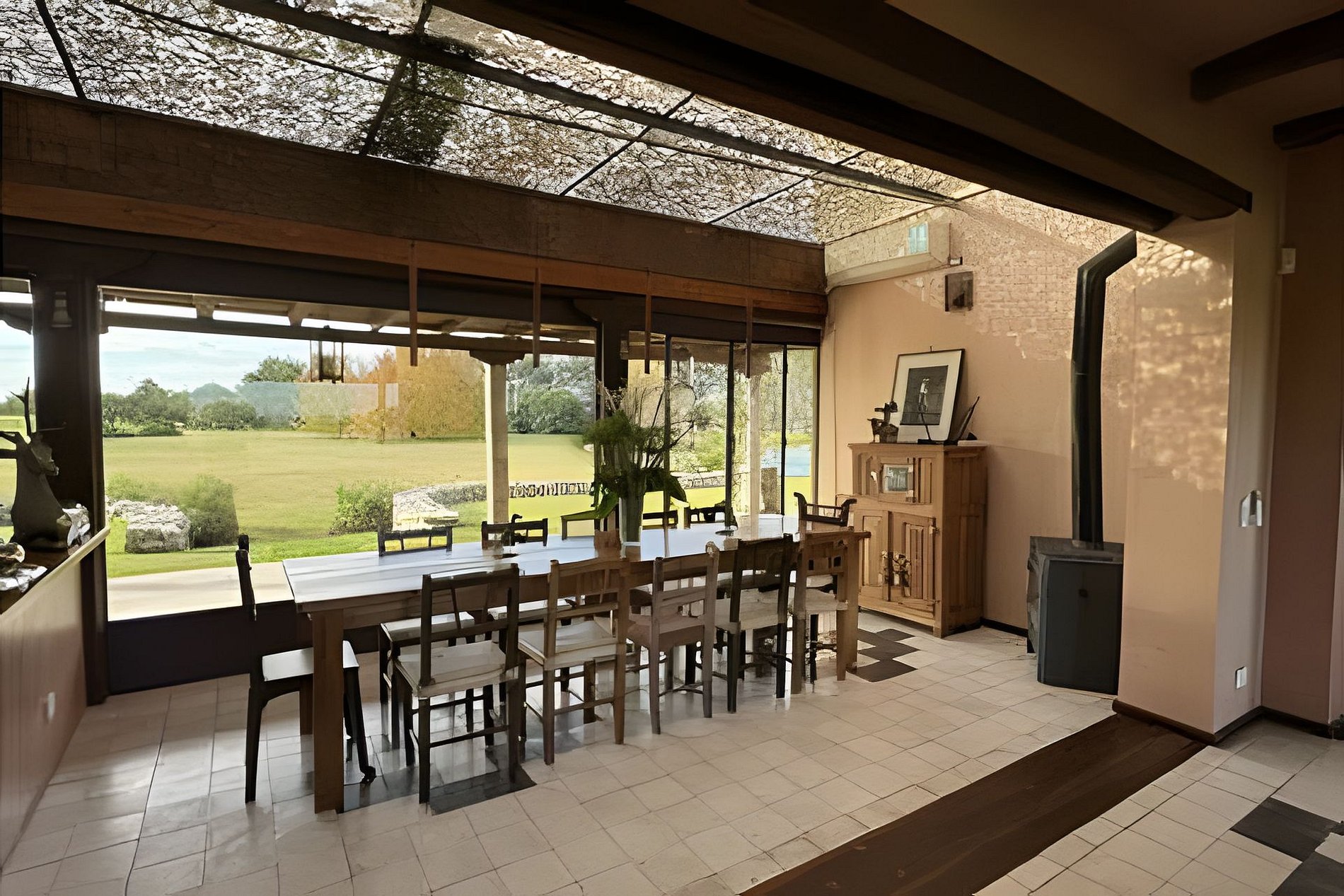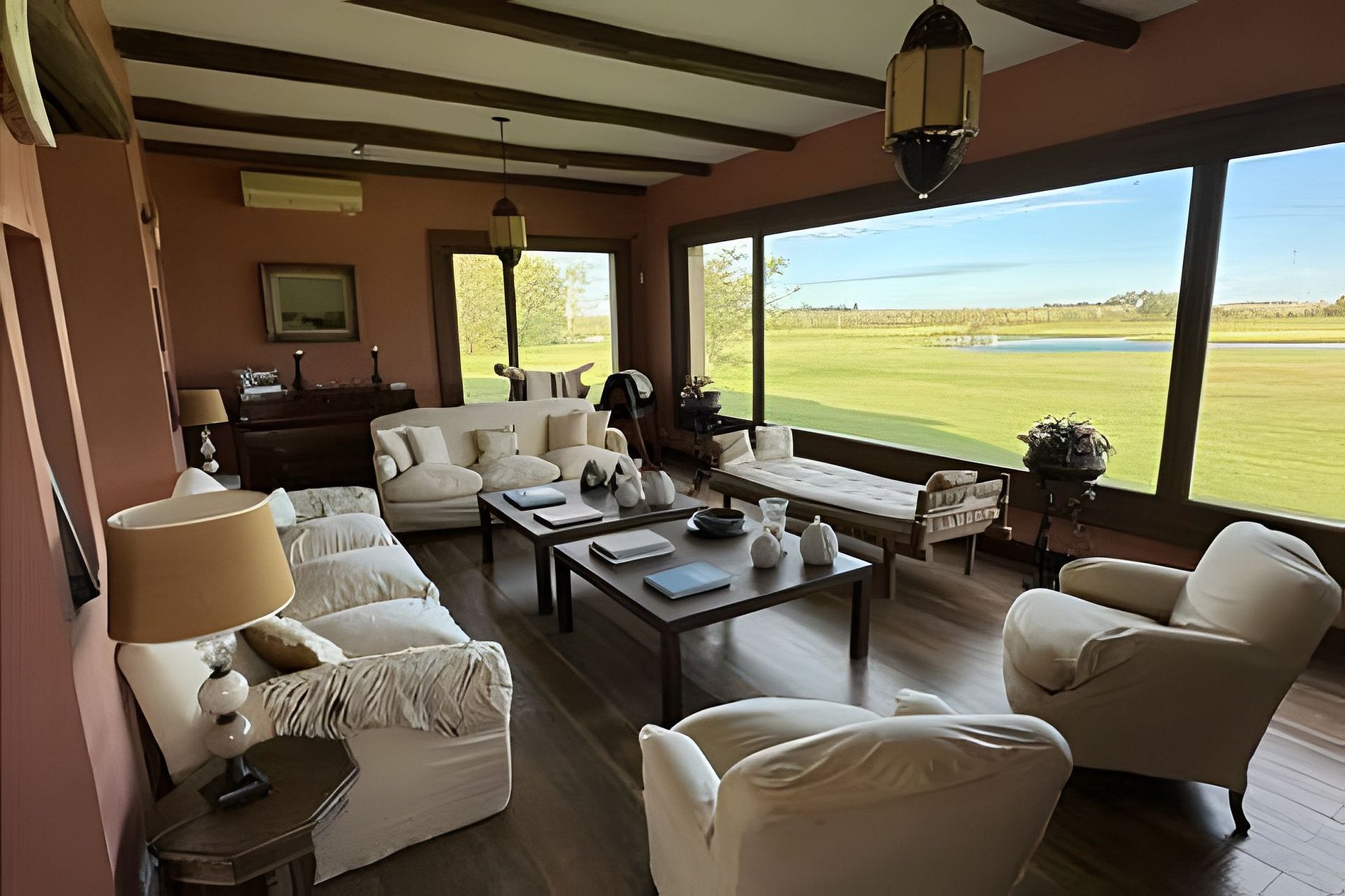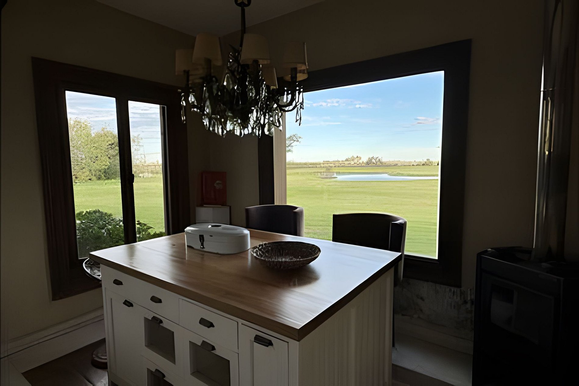 Conoce y disfruta de este Paraíso escondido! Hermosa casa de campo sobre un terreno de 3 hectáreas totalmente forestadas, frente a la laguna Culú Culú. Su ubicación es inmejorable! La casa está dividida por una hermosa galería de vidrio partido con vistas tanto a su laguna privada como a la laguna Culú Culú, creando un oasis de paz del que nunca querrás irte. Cada paisaje visible desde cada una de las ventanas es un cuadro perfecto de la naturaleza. En el ala principal de la casa encontrarás: - Un hermoso comedor, con paredes y techos de vidrio, permitiendo que la luz del sol inunde el espacio. - Un living con un gran ventanal y una chimenea, reflejando la pureza del entorno natural. La cocina está completamente equipada y es amplia, ofreciendo la máxima comodidad para cocinar. Todos los espacios públicos están equipados con salamandras a leña. Esta ala cuenta con 3 dormitorios: - La master suite en la planta alta, con baño en suite que incluye una bañera antigua, salamandra, televisión con directv y terraza privada. Cada ventana ofrece un paisaje deslumbrante. - En la planta baja, dos dormitorios con dos camas twin cada uno y la opción de agregar dos camas más, completando hasta cuatro camas twin en cada habitación si es necesario. - Un baño completo al final del pasillo. Cruzando la galería, equipada con mesas, sillas y sillones, se encuentra el otro ala que incluye: - Una cálida sala de estar con televisión con directv y salamandra. - Tres dormitorios adicionales: uno en suite con cama matrimonial, uno con dos camas twin y uno en la planta alta con cama matrimonial y terraza privada. Todos los dormitorios de la casa cuentan con AA frío/calor. La casa cuenta además con parrilla, horno de barro y una barbacoa en medio de un pequeño bosque, junto a un encantador gallinero. La piscina infinita completa el paisaje, haciéndolo aún más perfecto. Además, disponemos de kayaks para recorrer la laguna privada, metegol y mesa de ping pong. *PET FRIENDLY (mascotas pequeñas)