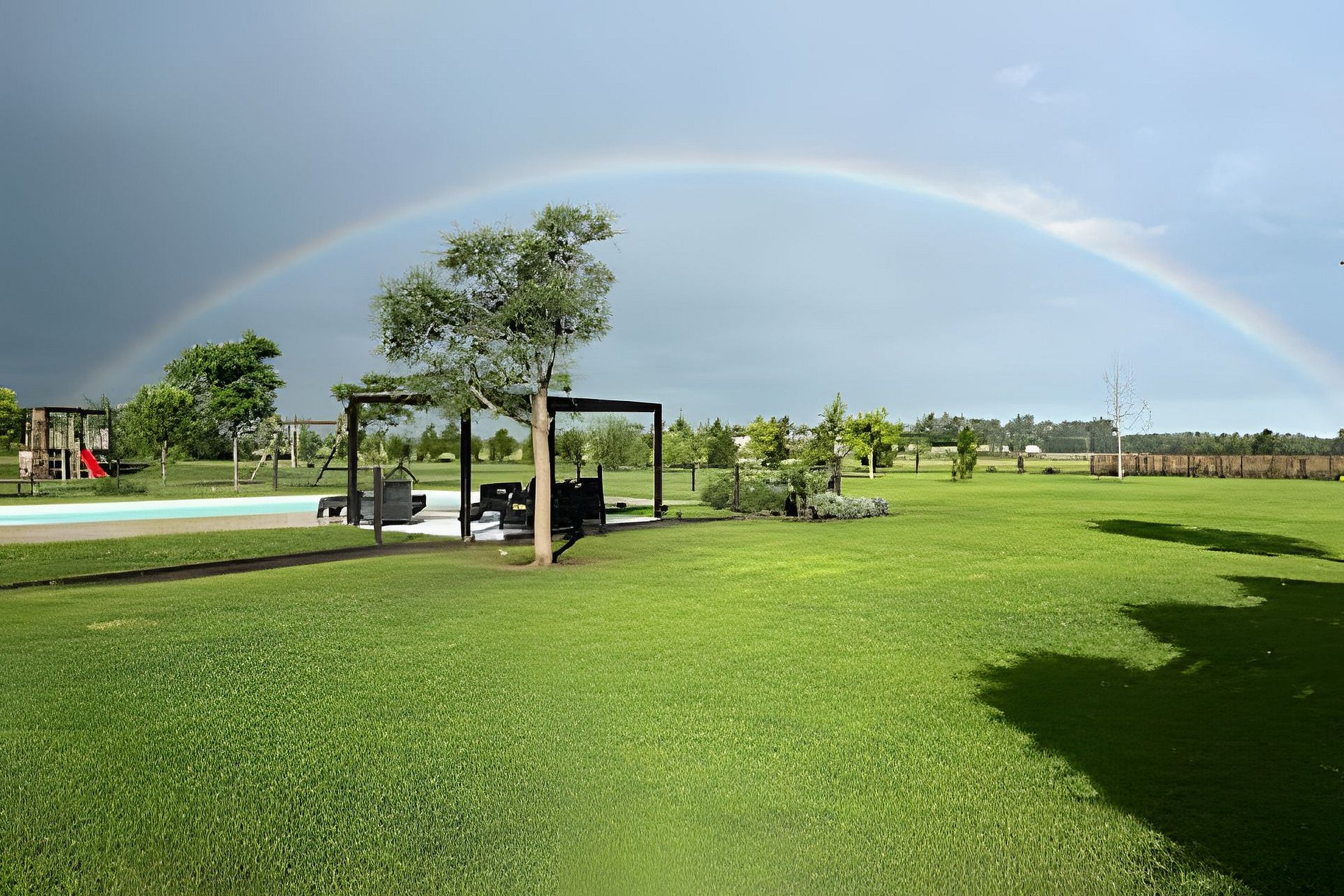 - Parque de 1,5 hectáreas con plaza de juegos, cancha de fútbol, piscina cercada con playa húmeda, pérgola con living y reposeras.